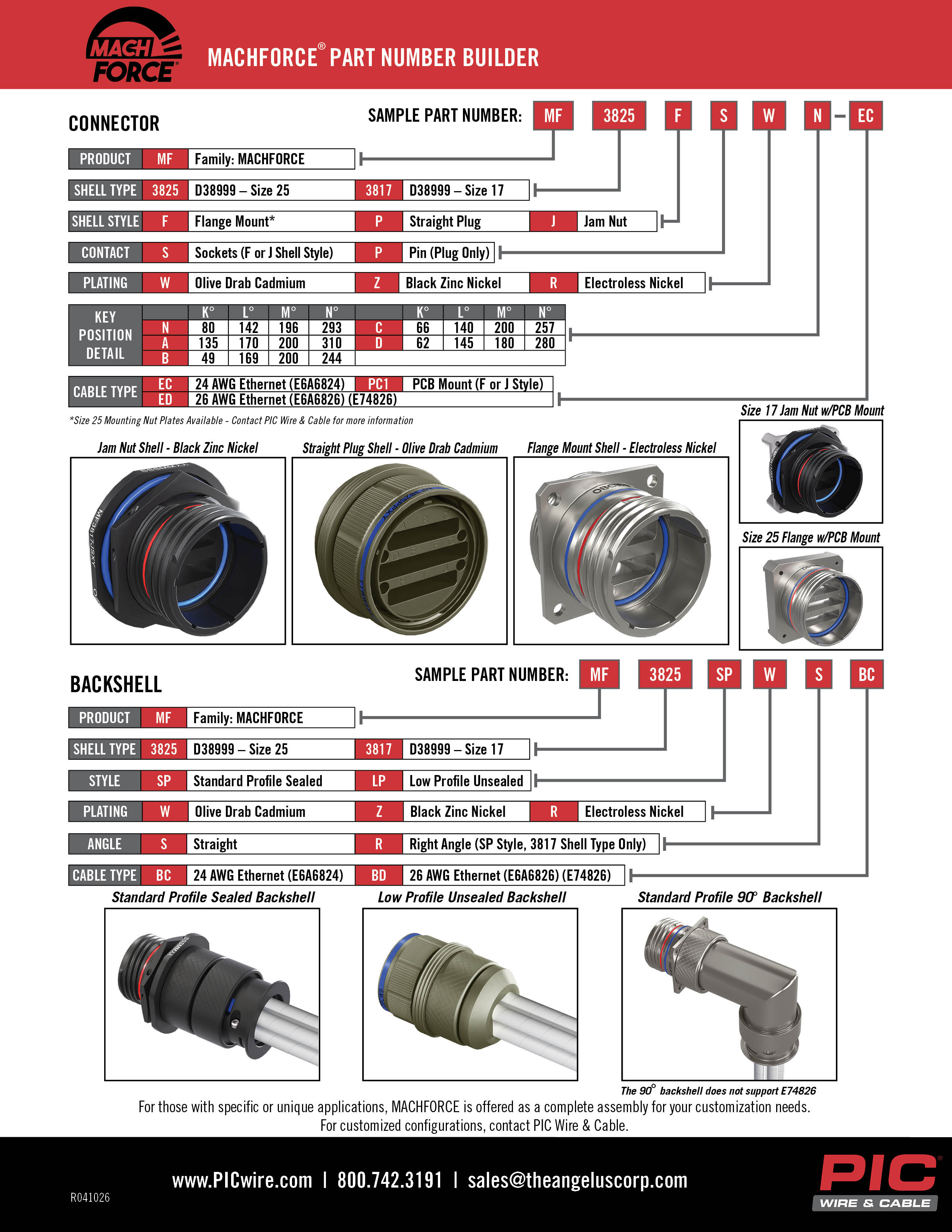 Design and build a part number for the MACHFORCE connector and backshell solution based on unique system application requirements. MACHFORCE connectors are also available as a complete assembly for unique applications.